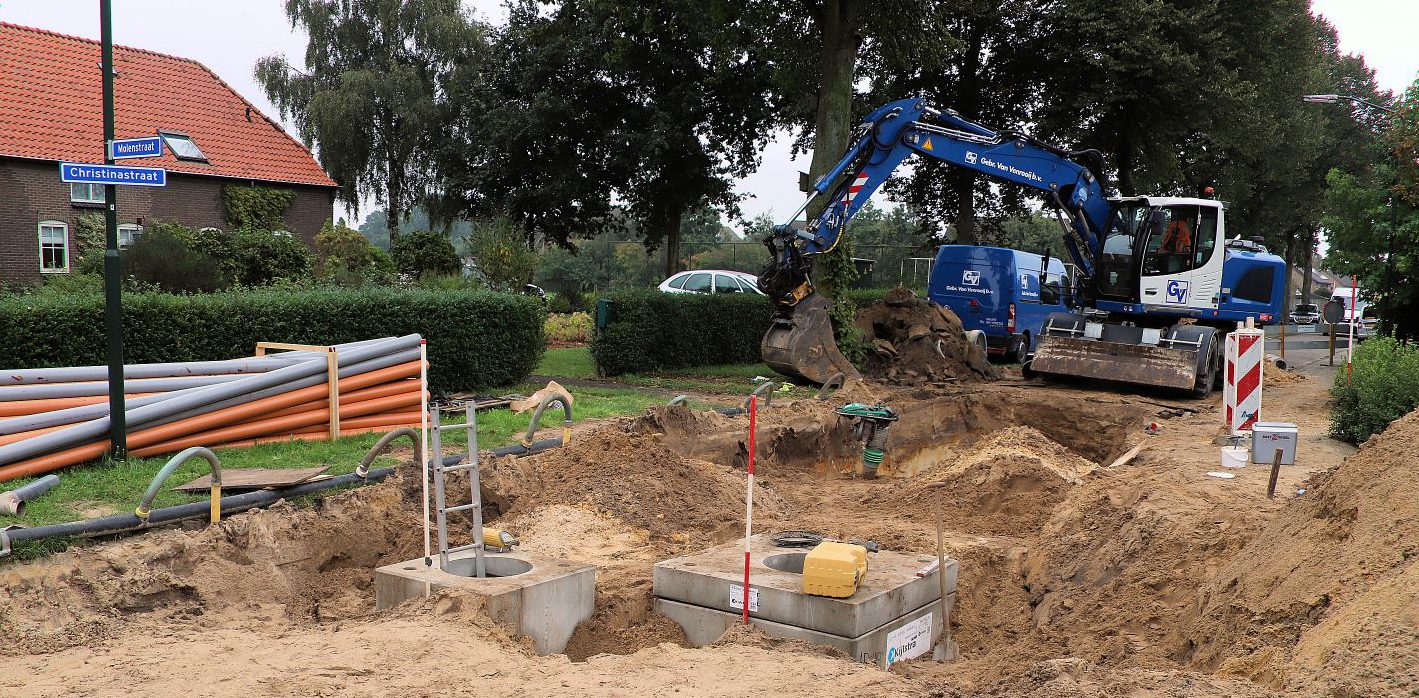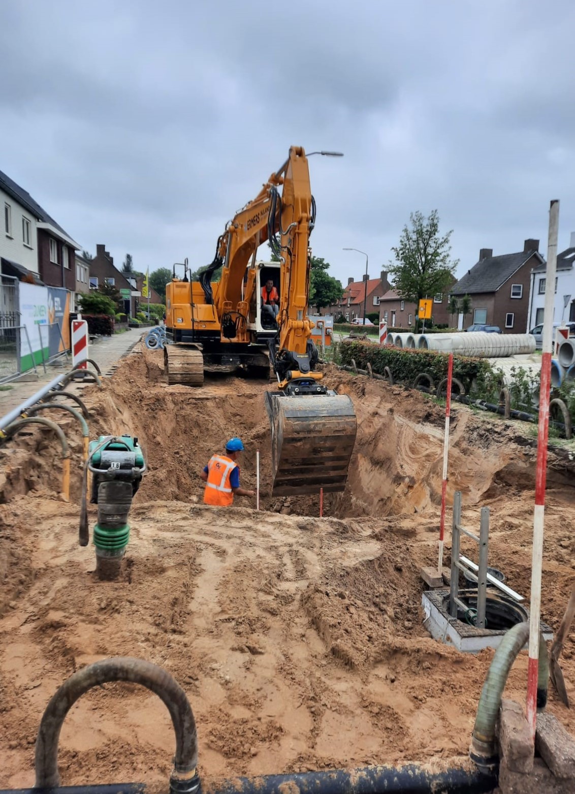 Het kostte nog moeite om de benodigde rioleringsmaterialen op tijd geleverd te krijgen. In goed overleg met gemeente Sint Michielsgestel is het toch gelukt en konden we op tijd met de werkzaamheden starten, en is de voortgang gewaarborgd.