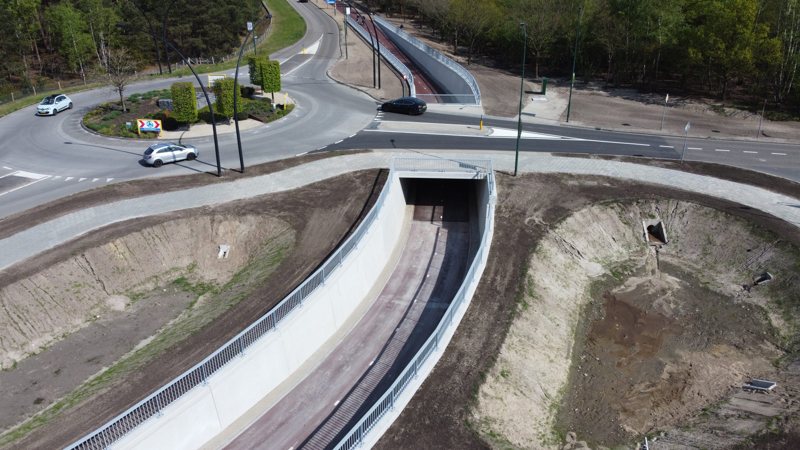 In juni 2021 heeft de gemeente Bernheze het project ‘snelfietsroute Nistelrode – Uden fase 3’ op de aanbesteed. Tijdens deze werkzaamheden werd het laatste stuk van de snelfietsroute met elkaar verbonden door middel van een tunnel die onder de Heescheweg komt te liggen. Op basis van inschrijving met een alternatief hebben wij dit project aangenomen. Na de aanbestedingsperiode zijn wij volop bezig geweest met het ‘opnieuw’ engineeren van de gehele tunnel. Na het maken van een compleet nieuw ontwerp en bijbehorende berekeningen voor de constructie van de tunnel konden we eindelijk beginnen met het grondverzet. Hierop volgde het maken van de tunnelconstructie. Deze bestaat uit in het werk gestorte betonvloeren en prefab betonelementen zoals de op maat gemaakte keerwanden en de unieke betonnen voorzetelementen.